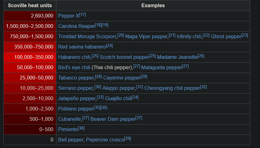 To put it into perspective, the highest amount of spice I willingly had was Tabasco (and in big quantities) which is rated in about 25,000 - 50,000 Scoville Heat Units (click to learn about this scale).